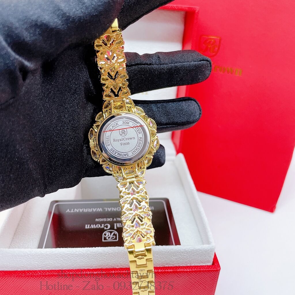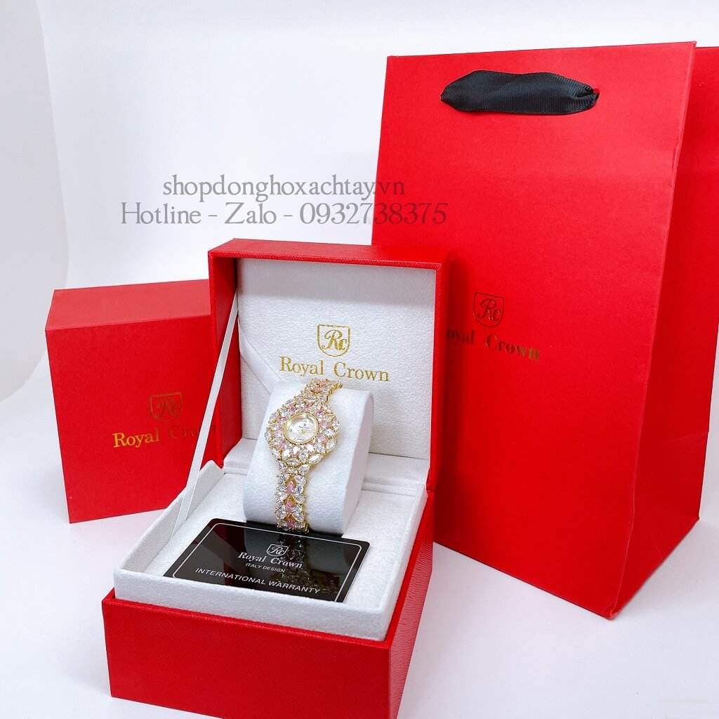 - Sản phẩm Đồng Hồ Nữ Royal Crown 2035 Đá Trắng Hồng Gold 34mm Chính Hãng fullbox, bao gồm: đồng hồ + hộp + Thẻ + Túi + Phiếu bảo hành