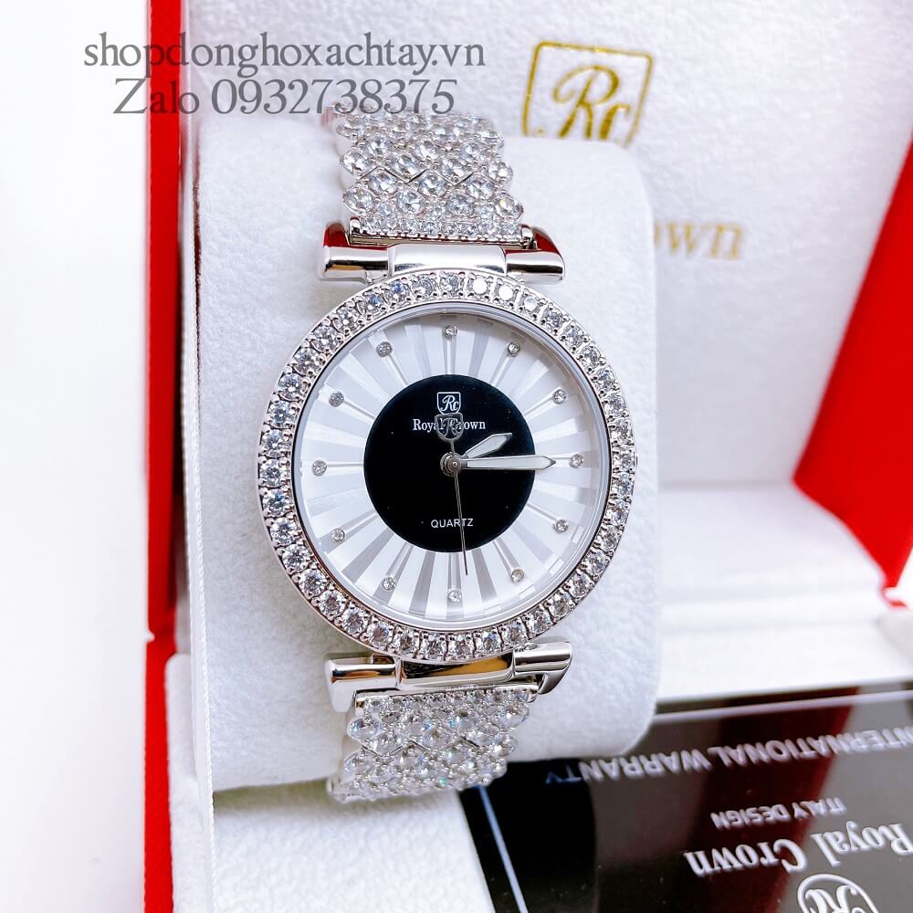 Hình Ảnh Đồng Hồ Nữ Royal Crown 4611 Dây Đá Silver 36mm Chính Hãng