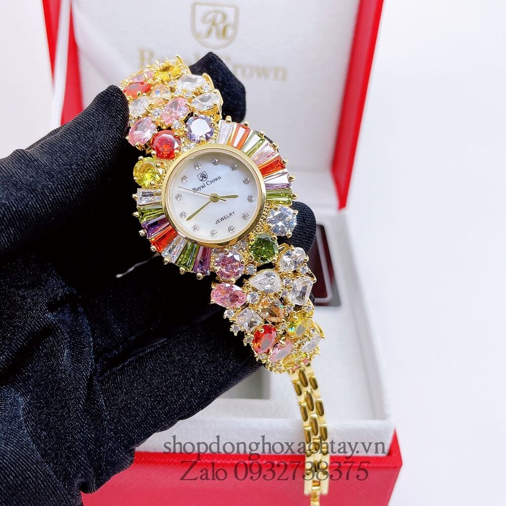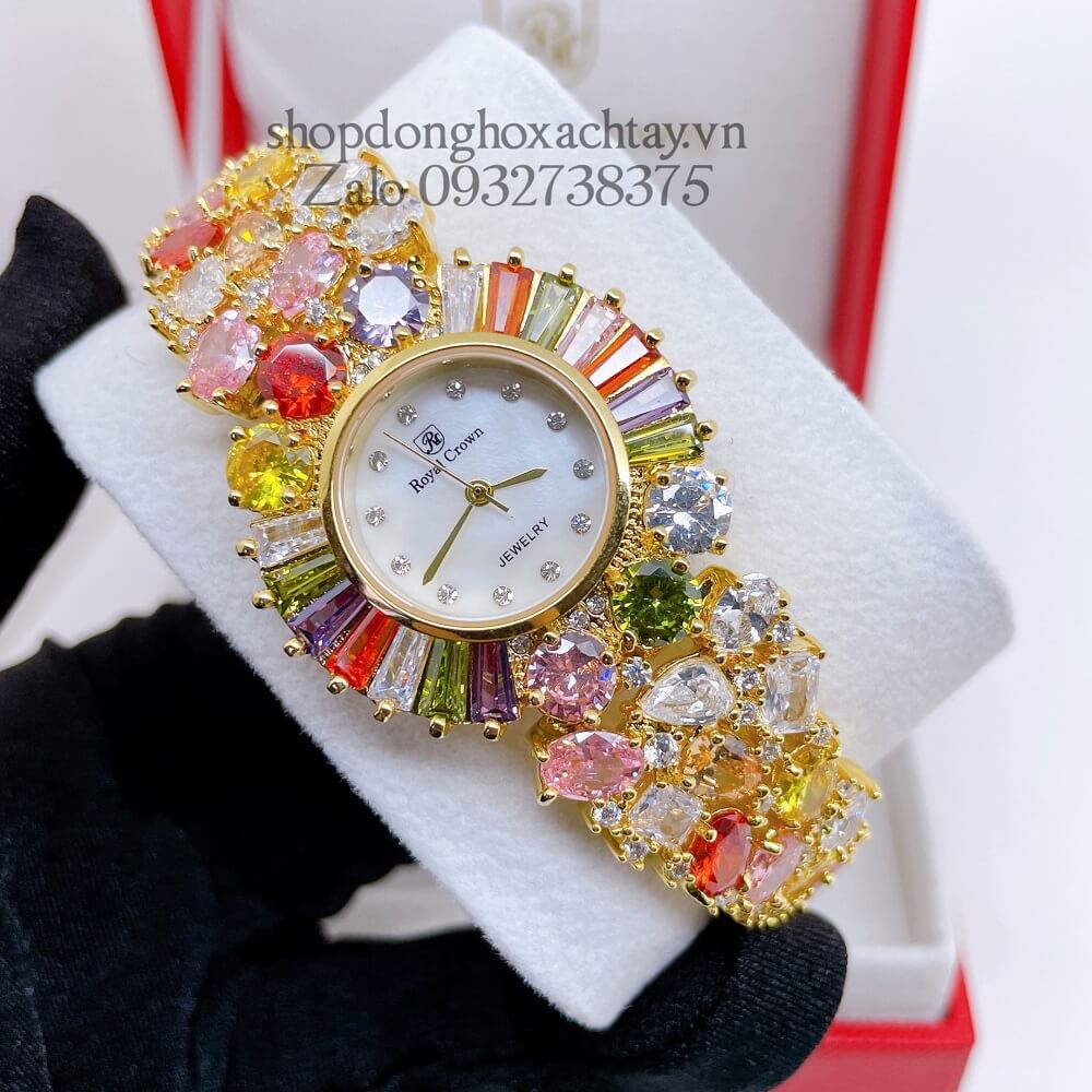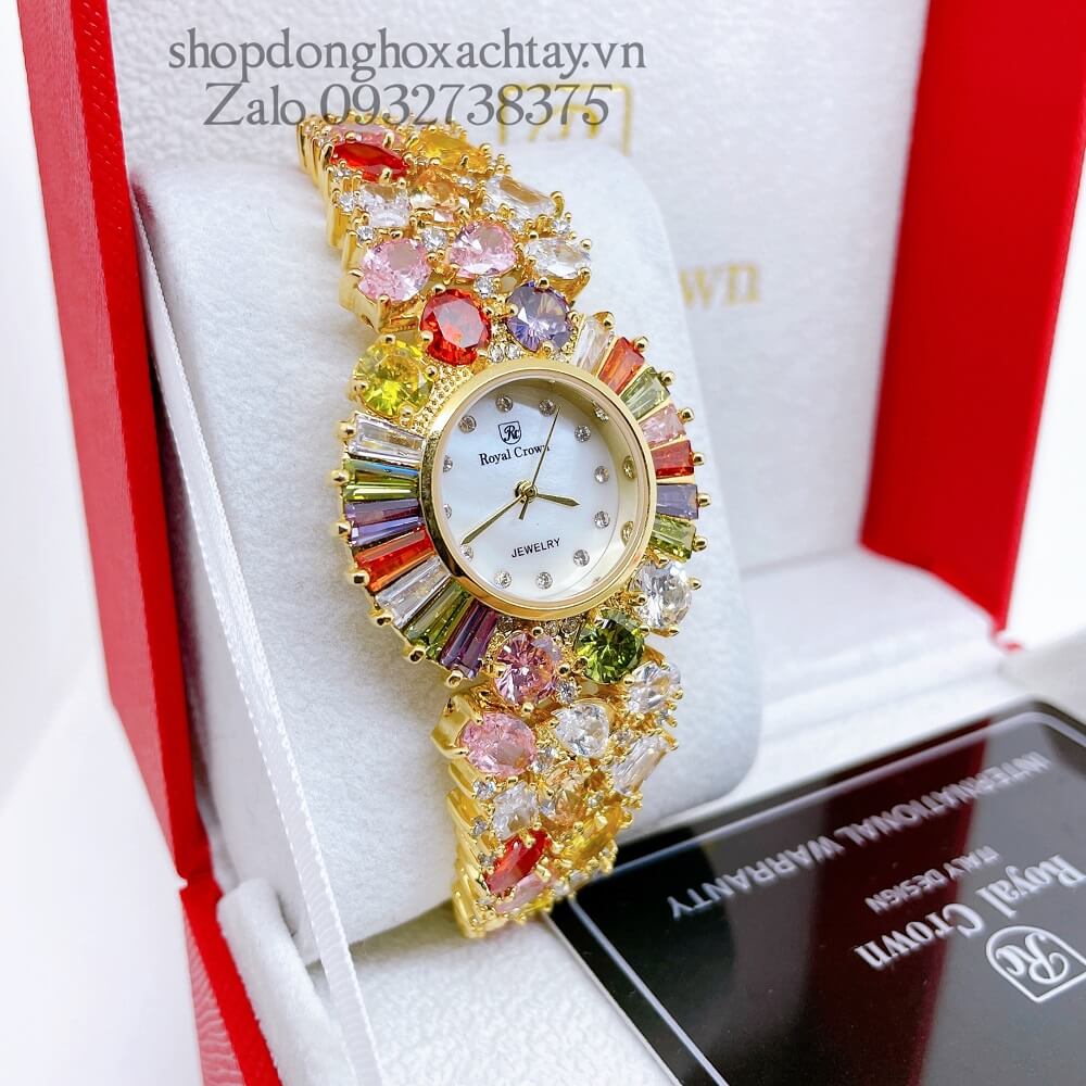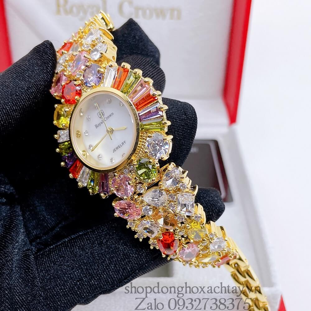 Đồng hồ Royal Crown đá màu cho nữ, dây và mặt được đính đá màu nổi bật