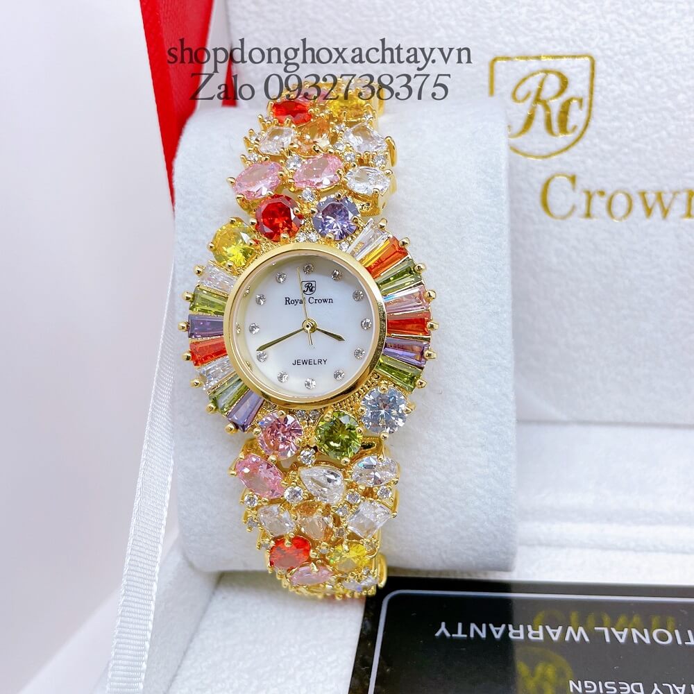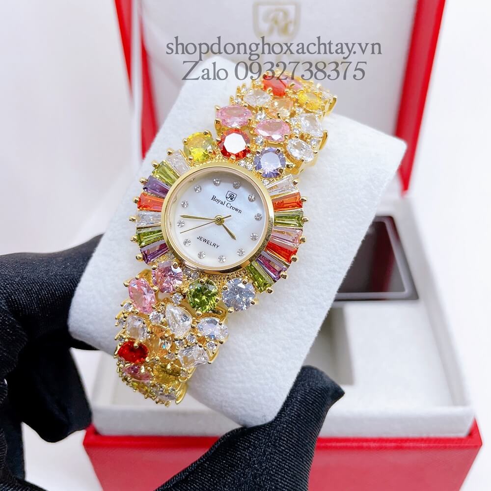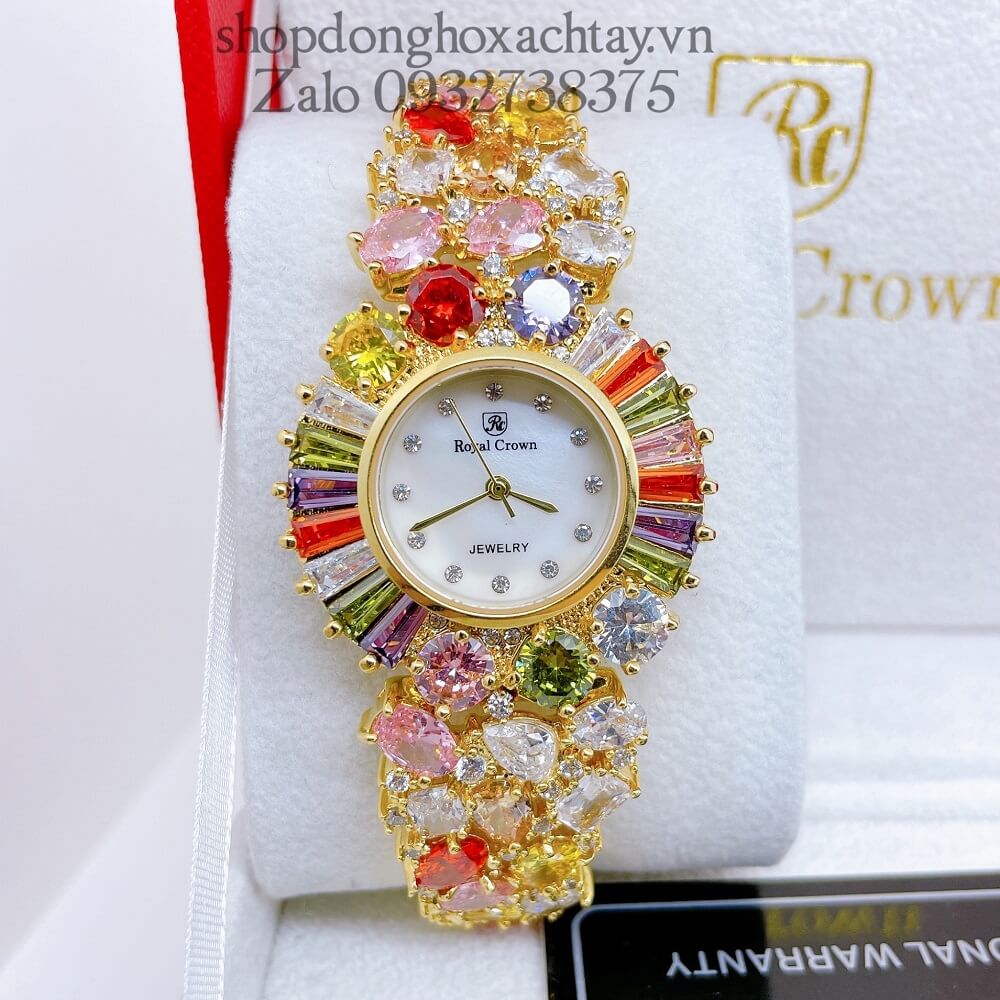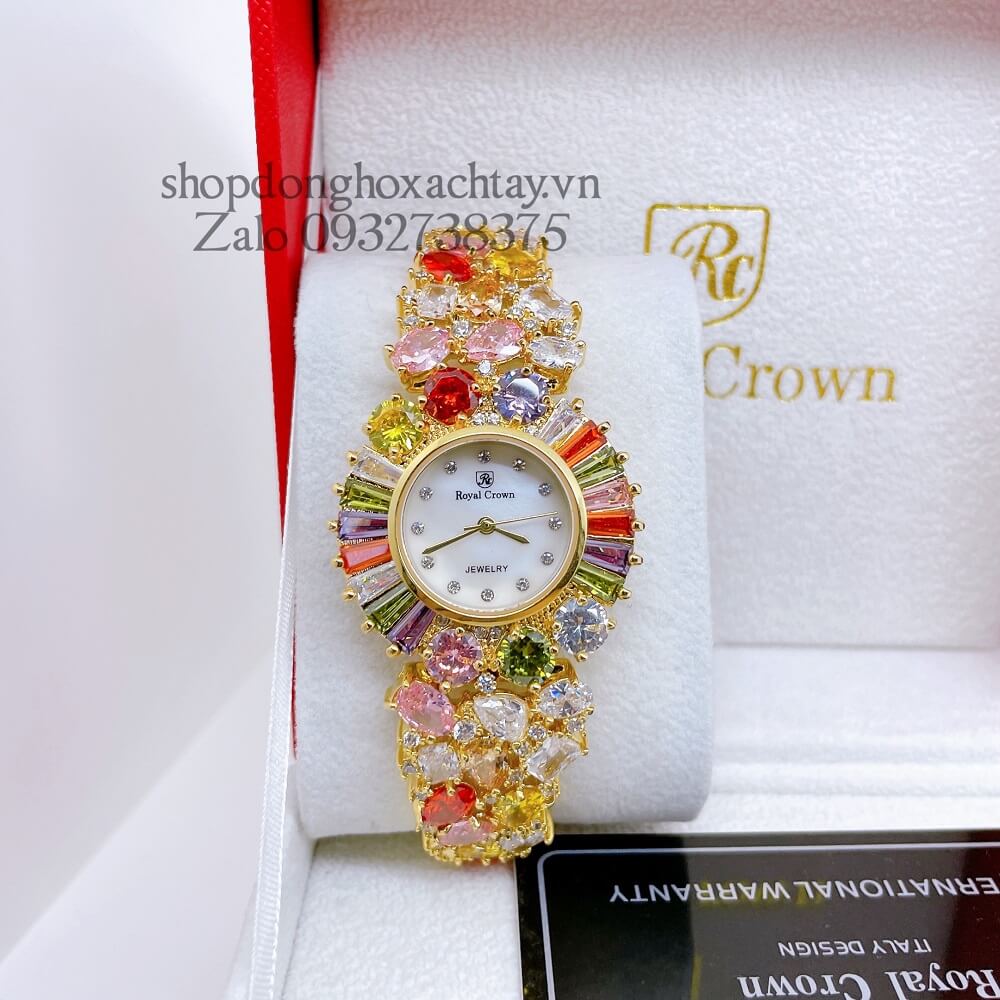 Đồng hồ Royal Crown đá màu cho nữ, dây và mặt được đính đá màu nổi bật