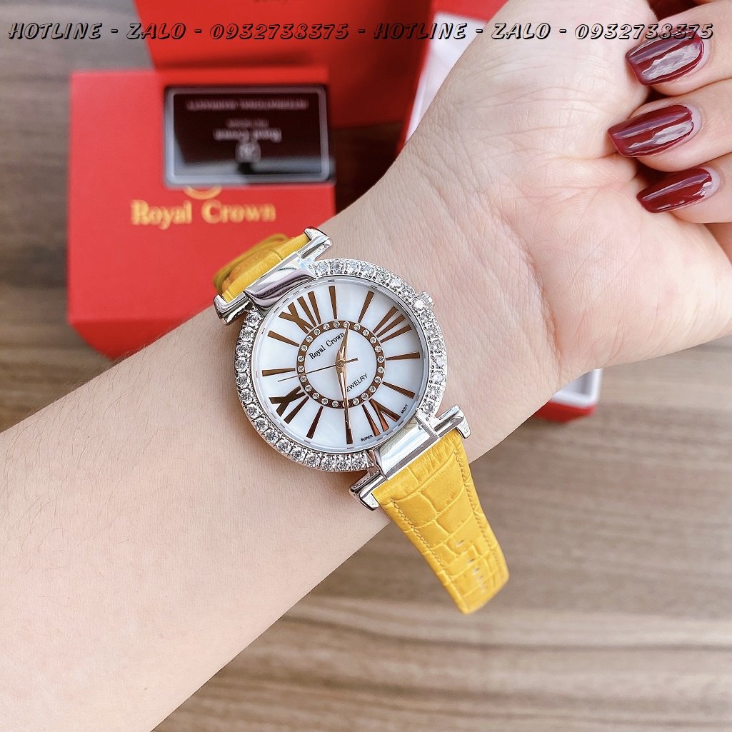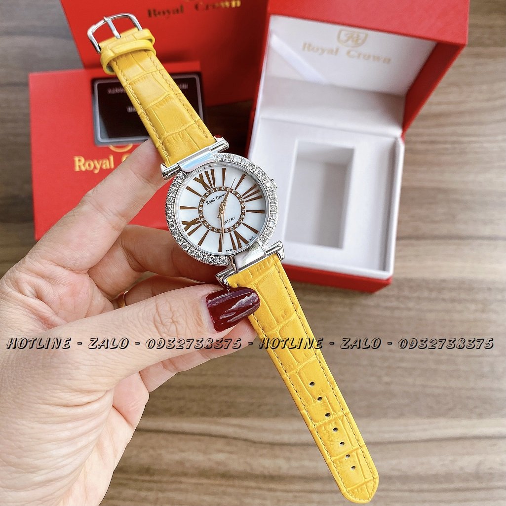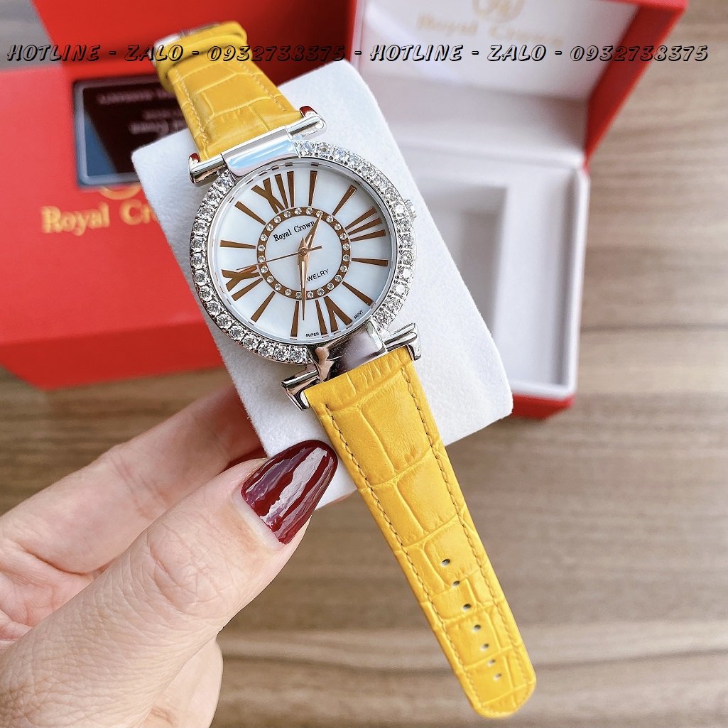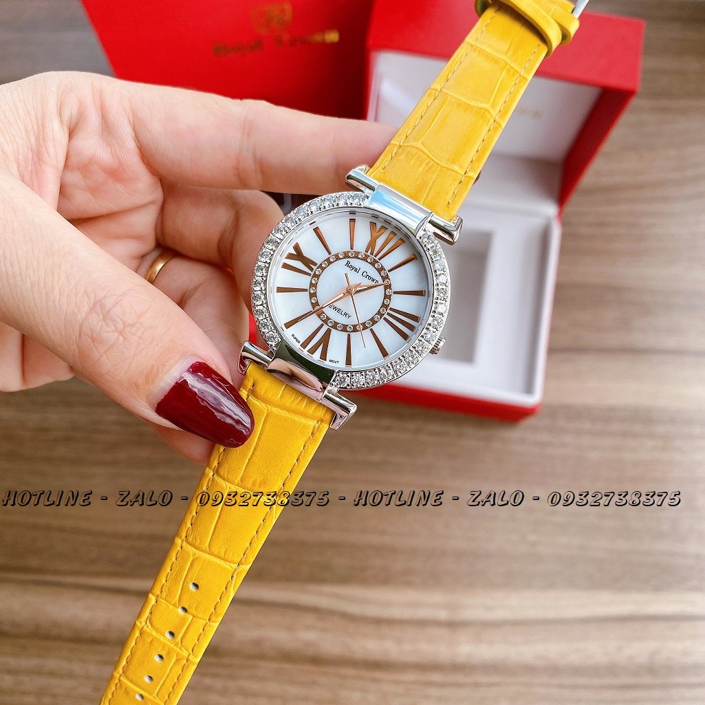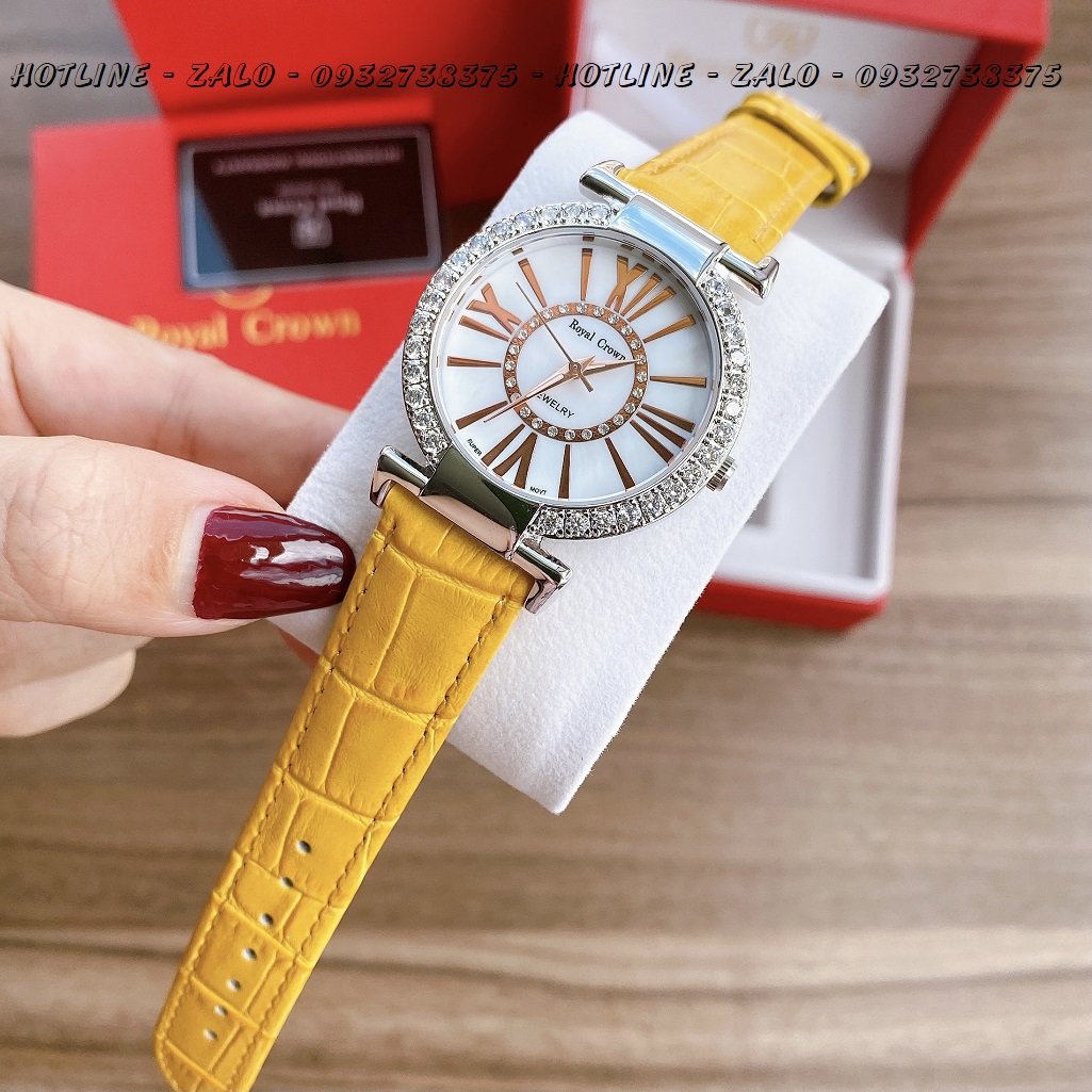 1/THÔNG SỐ KỸ THUẬT: Đồng Hồ Nữ Royal Crown 6116 Dây Da Vàng 36mm Chính Hãng