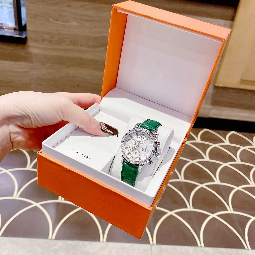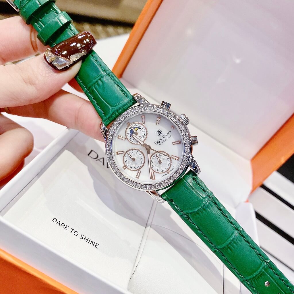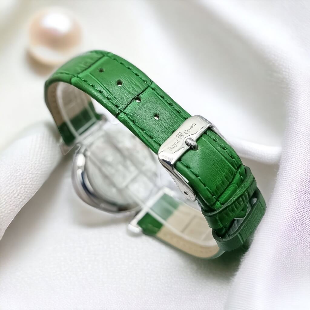 Đồng Hồ Nữ Royal Crown 6420 Dây Da Xanh Lá Vỏ Màu Silver Size 35mm là một mẫu đồng hồ thời trang cao cấp được thiết kế dành cho phái đẹp, với những đặc điểm nổi bật như: