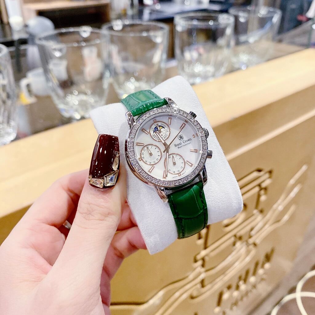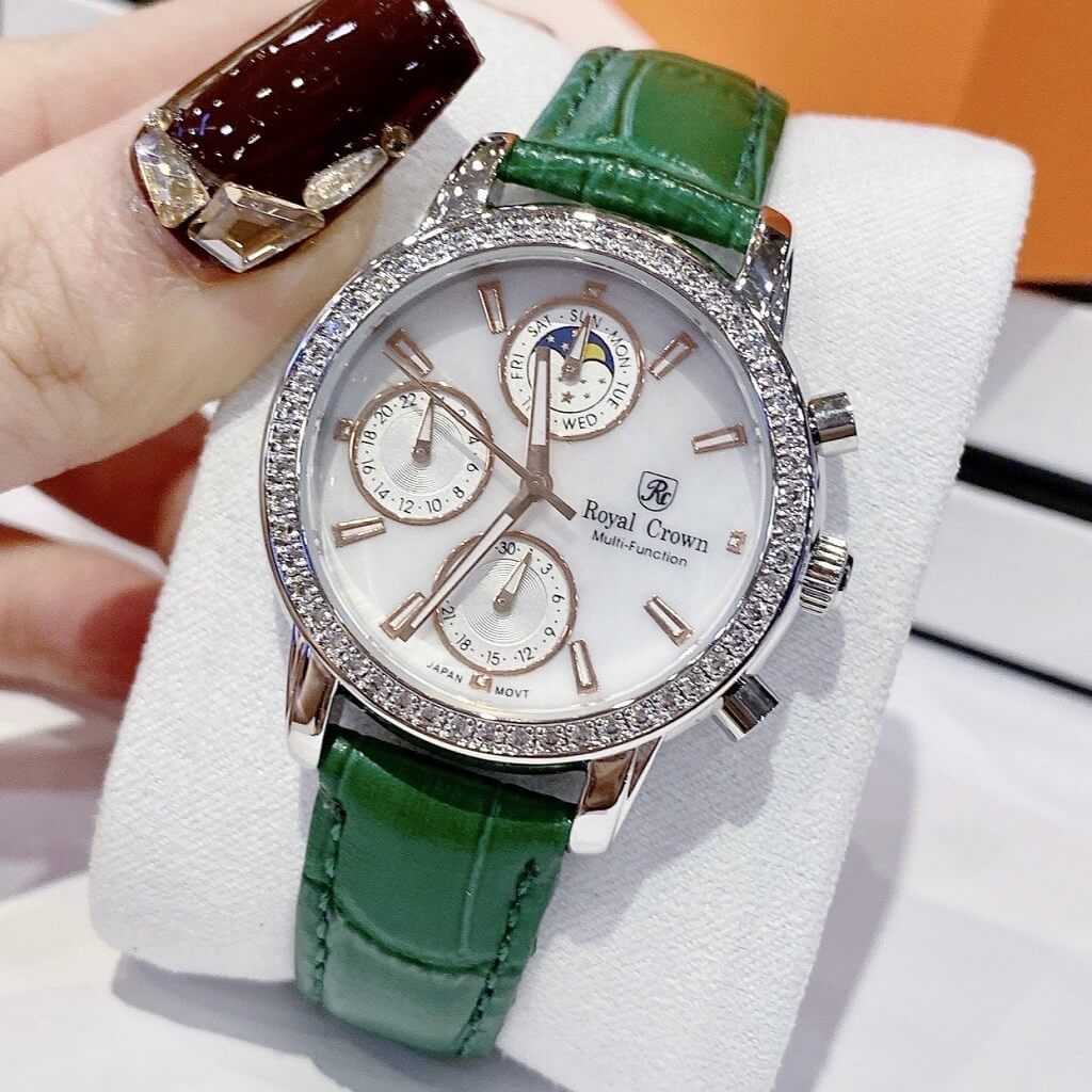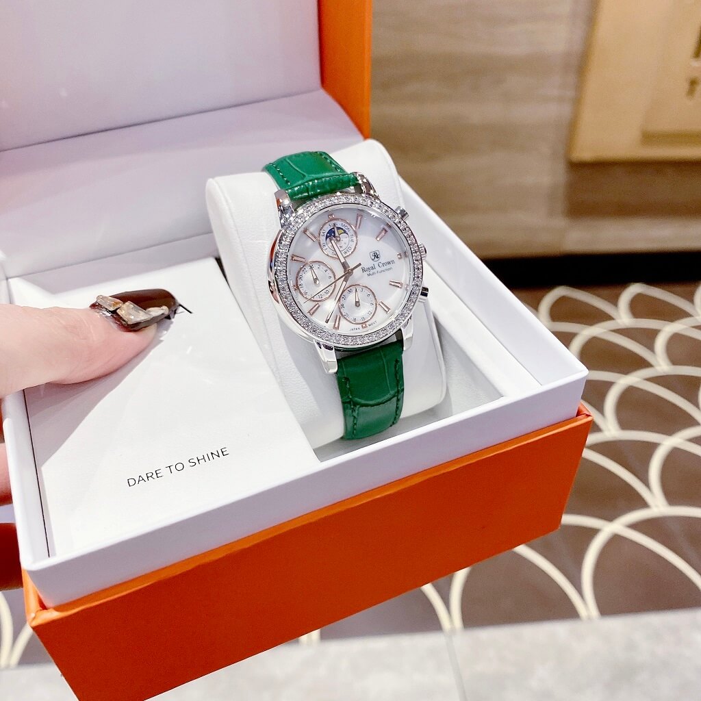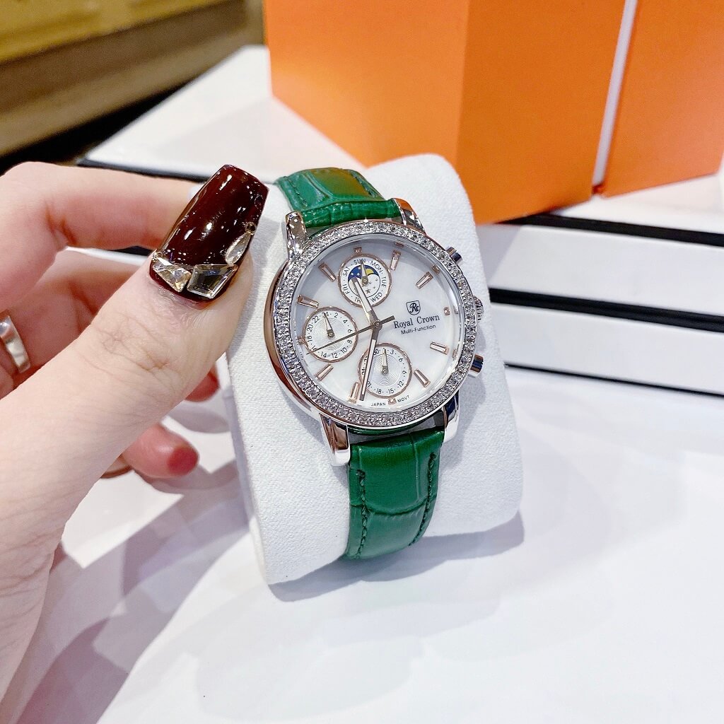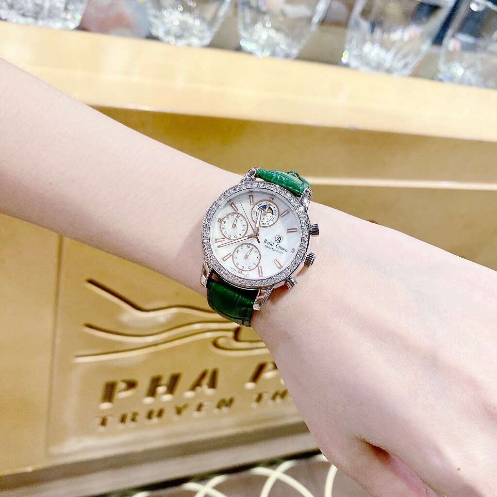 Thông số chi tiết sản phẩm: Đồng Hồ Nữ Royal Crown 6420 Dây Da Xanh Lá Vỏ Màu Silver Size 35mm Chính Hãng