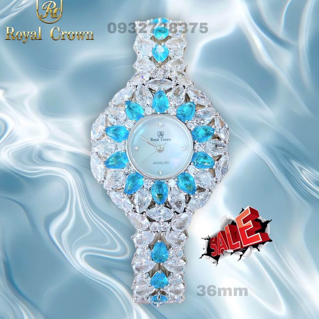 Đồng hồ Royal Crown đính đá xanh nước biển là chiếc đồng hồ được thiết kế tinh xảo, kết hợp giữa vẻ đẹp sang trọng và sự thanh lịch. Thương hiệu Royal Crown nổi bật với các mẫu đồng hồ sử dụng đá quý hoặc đá nhân tạo như đá Swarovski để trang trí, tạo điểm nhấn lấp lánh cho sản phẩm.