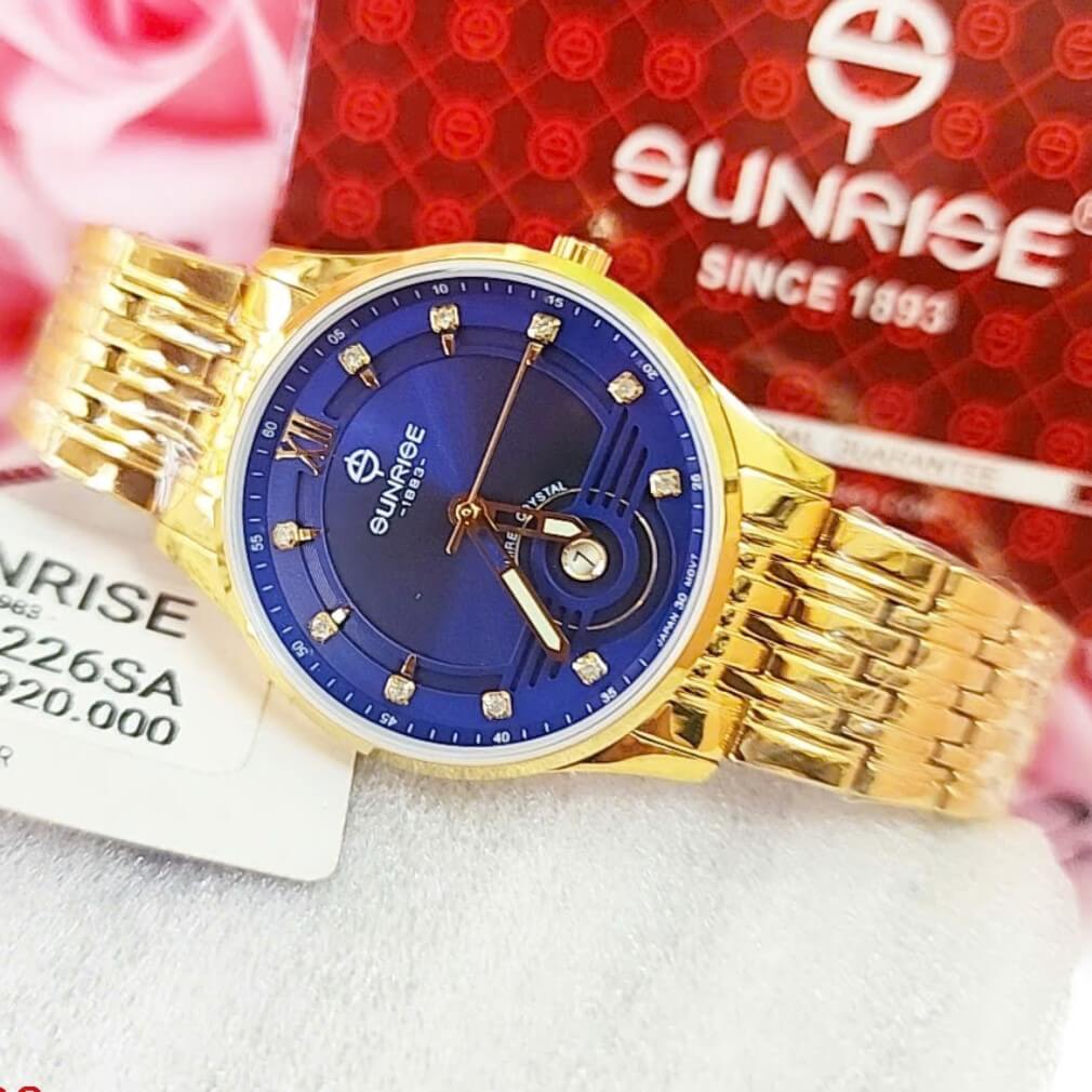 Đồng Hồ Nữ Sunrise 1226SA** sở hữu thiết kế thanh lịch, tinh tế và vô cùng sang trọng, phù hợp với những quý cô yêu thích sự trang nhã nhưng cũng không kém phần nổi bật. Mặt đồng hồ được thiết kế với màu **xanh dương** nổi bật, đem lại vẻ đẹp đầy cuốn hút và trẻ trung. Màu sắc này không chỉ phù hợp với những dịp trang trọng mà còn dễ dàng kết hợp với nhiều trang phục khác nhau, từ công sở đến dạo phố.
