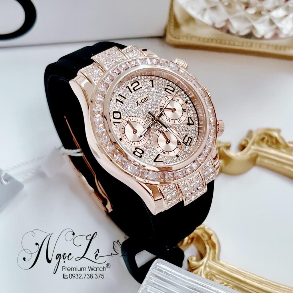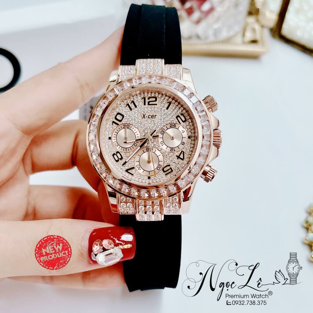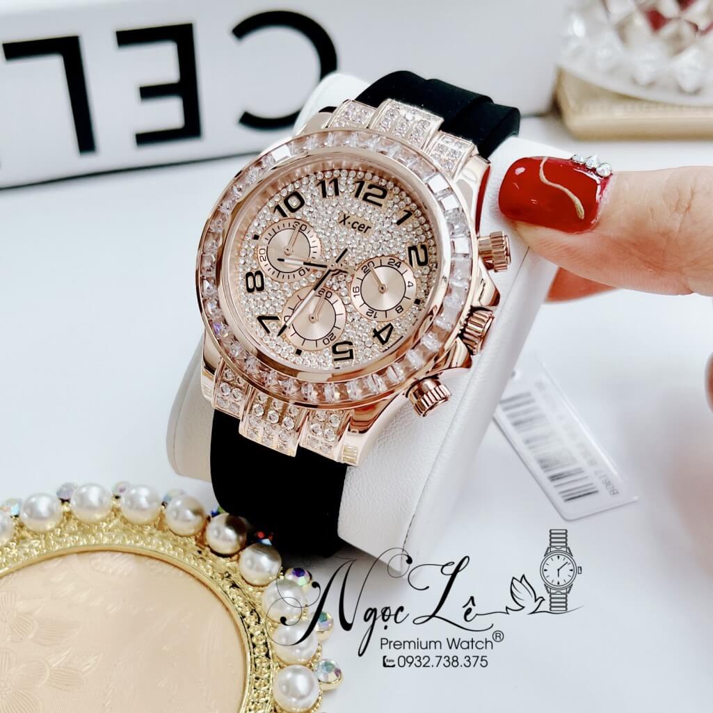 Hình ảnh Đồng Hồ Nữ X-Cer B0617 Dây Silicone Đen Vỏ Rose Size 38mm Chính Hãng