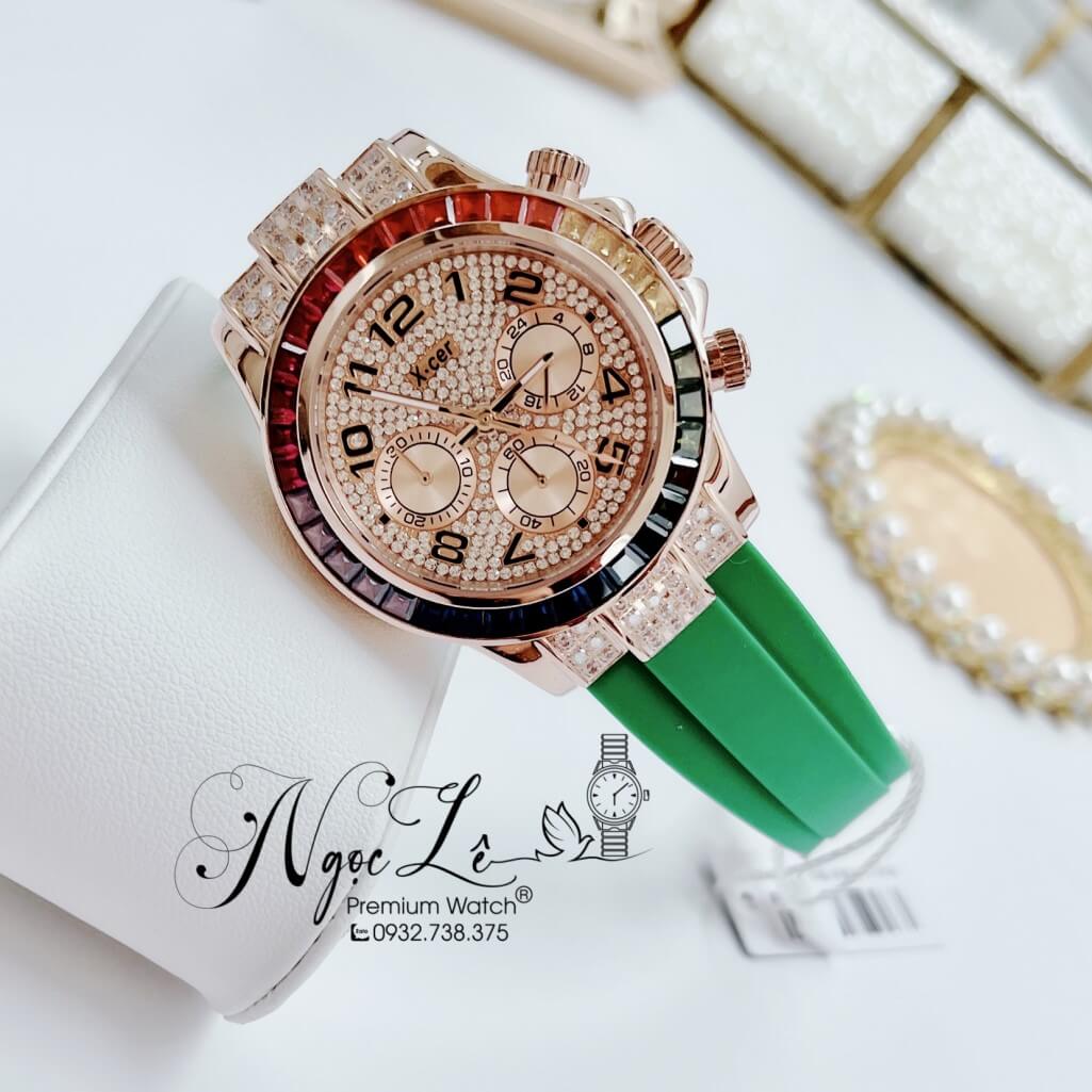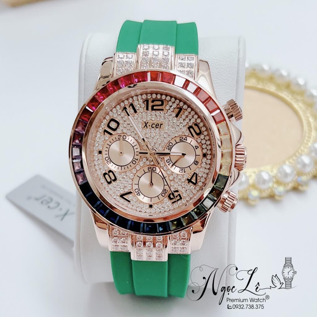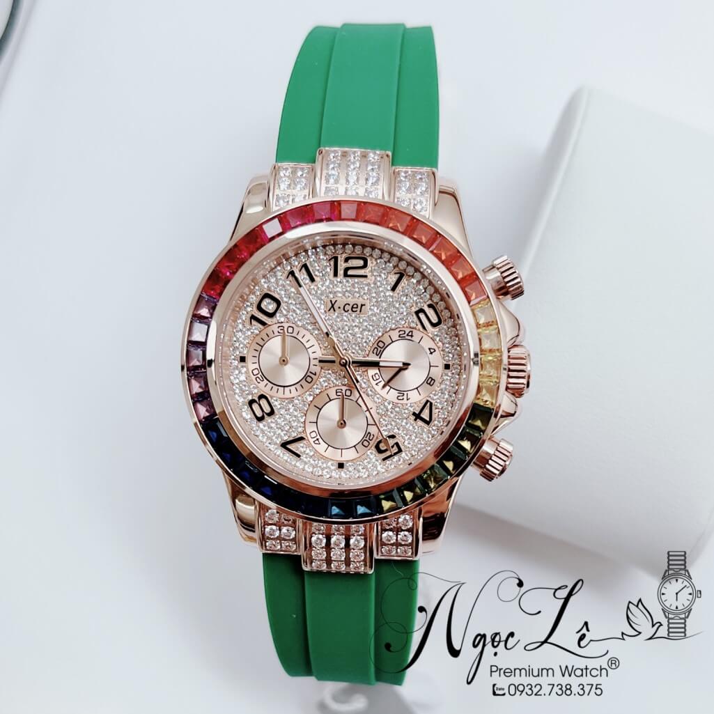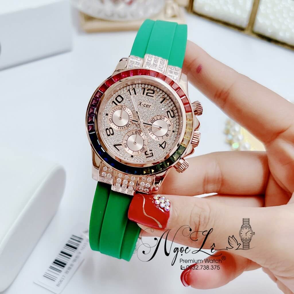 Hình ảnh Đồng Hồ Nữ X-Cer B0617 Dây Silicone Xanh Lá Vỏ Rose Size 38mm Chính Hãng