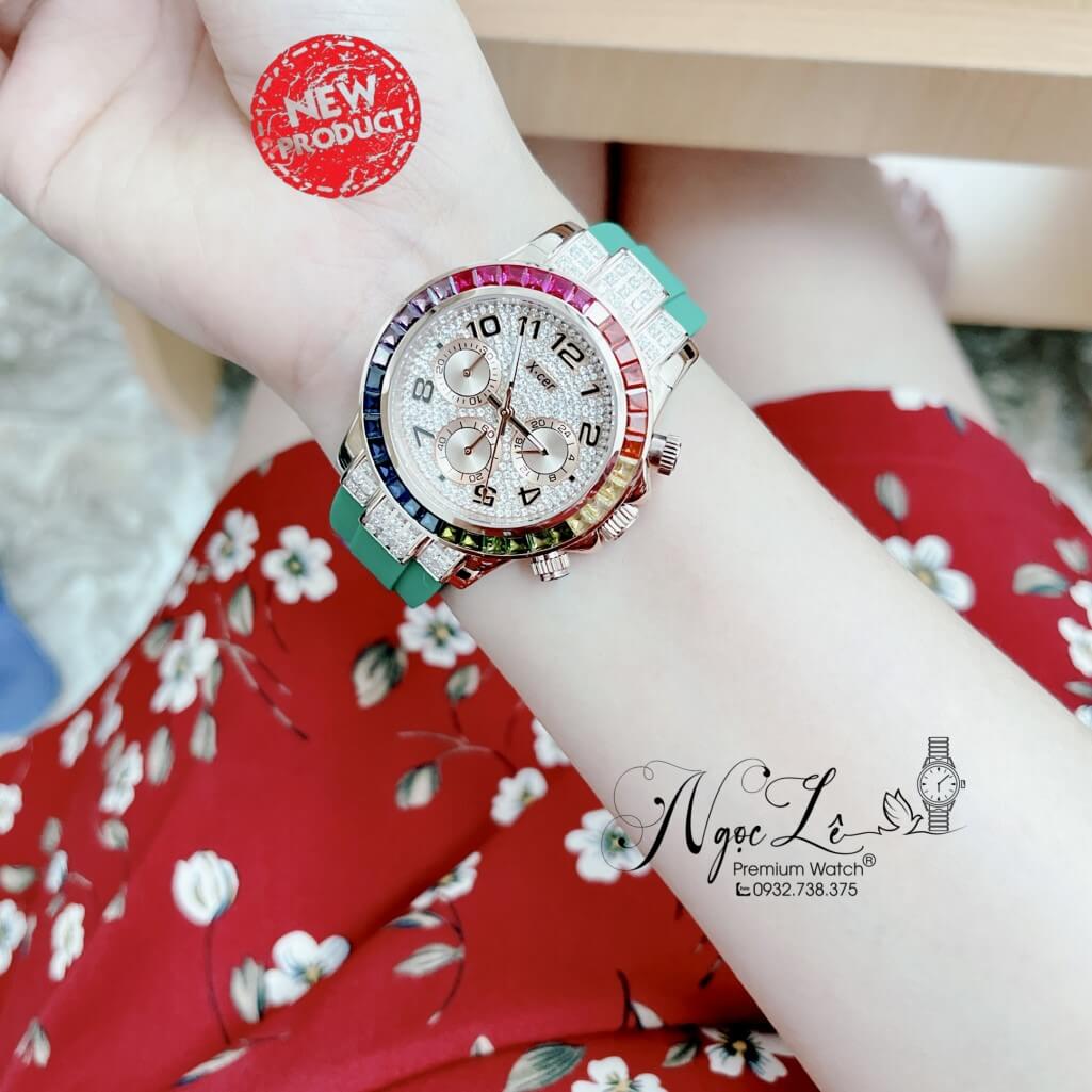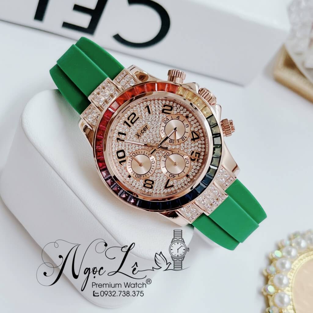 Thông số chi tiết sản phẩm: Đồng Hồ Nữ X-Cer B0617 Dây Silicone Xanh Lá Vỏ Rose Size 38mm Chính Hãng