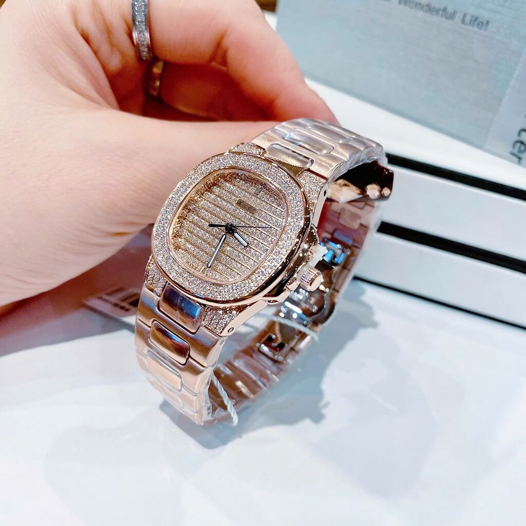 ✅ Thiết kế thời thượng: Màu Rose Gold sang trọng, đính đá nổi bật – phù hợp với xu hướng thời trang hiện đại.