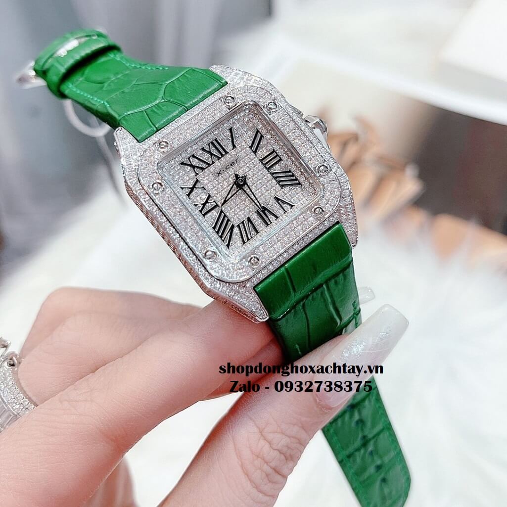 THÔNG TIN CHI TIẾT SẢN PHẨM: Đồng Hồ Nữ X-cer Dây Da Xanh Lá Mặt Vuông Vỏ Silver B0593