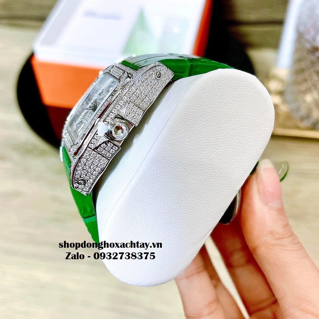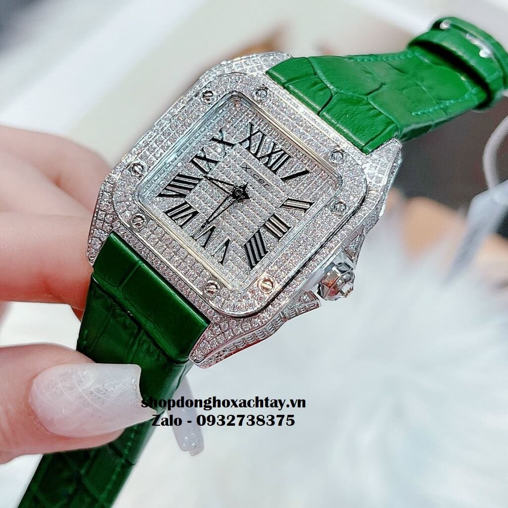 Đồng hồ XCER B0593 silver mặt vuông siêu hiếm dáng Cartier, dây da xanh cực kỳ bắt mắt, siêu siêu ấn tượng, cá tính và nổi bật