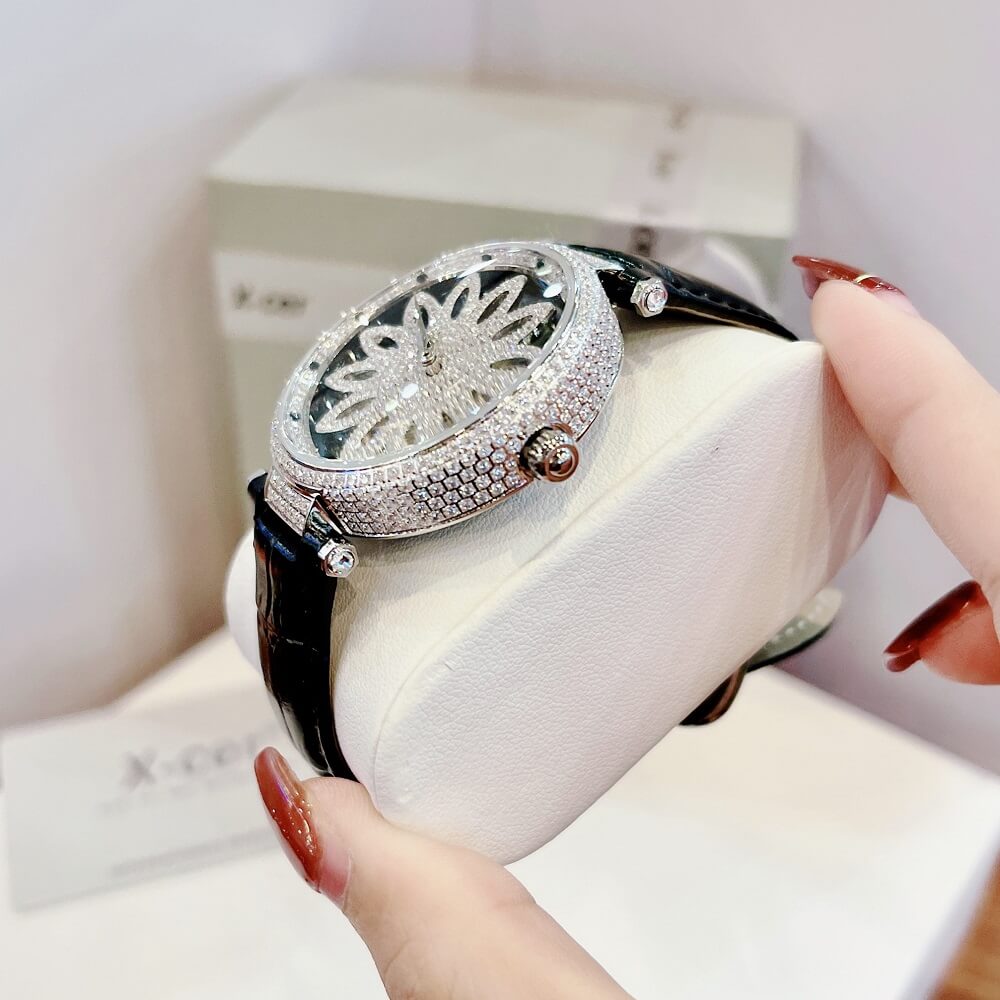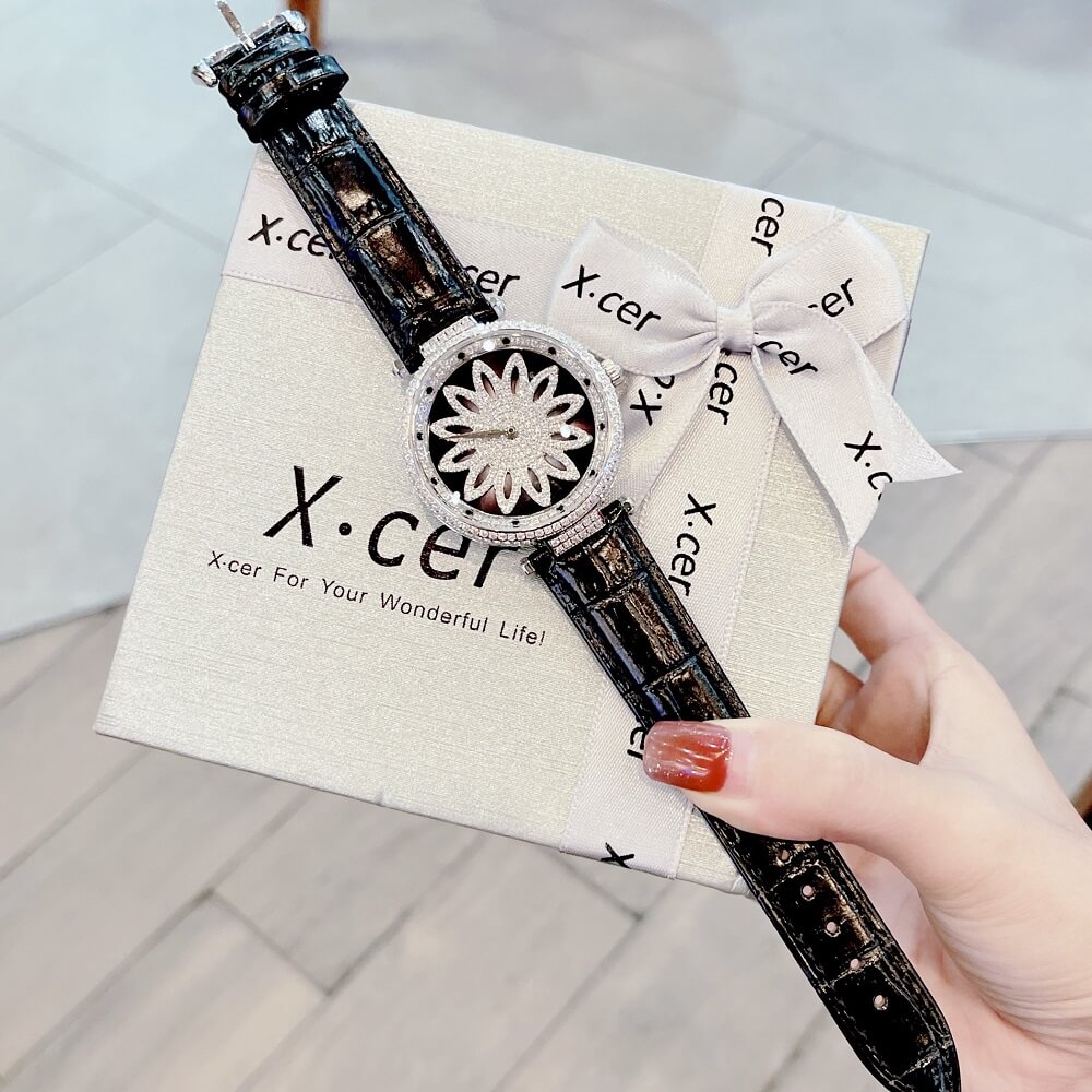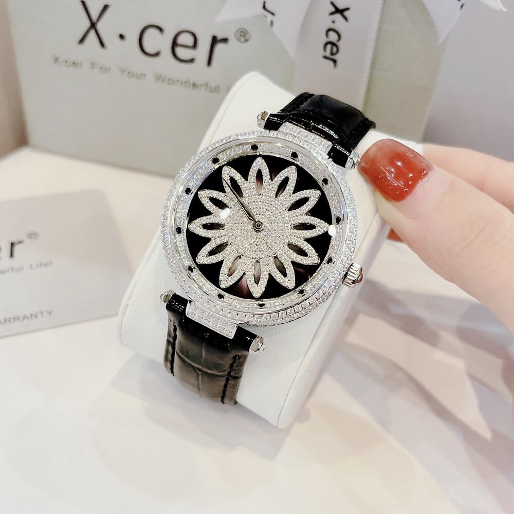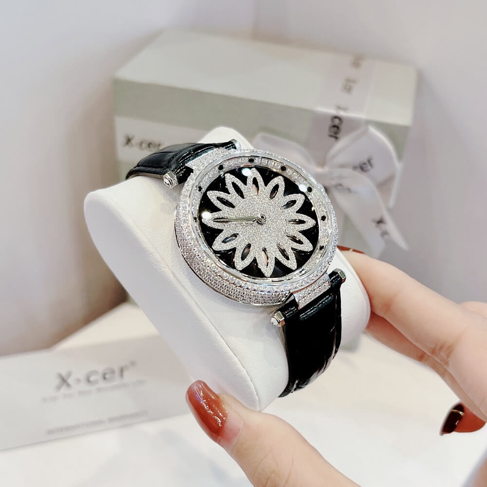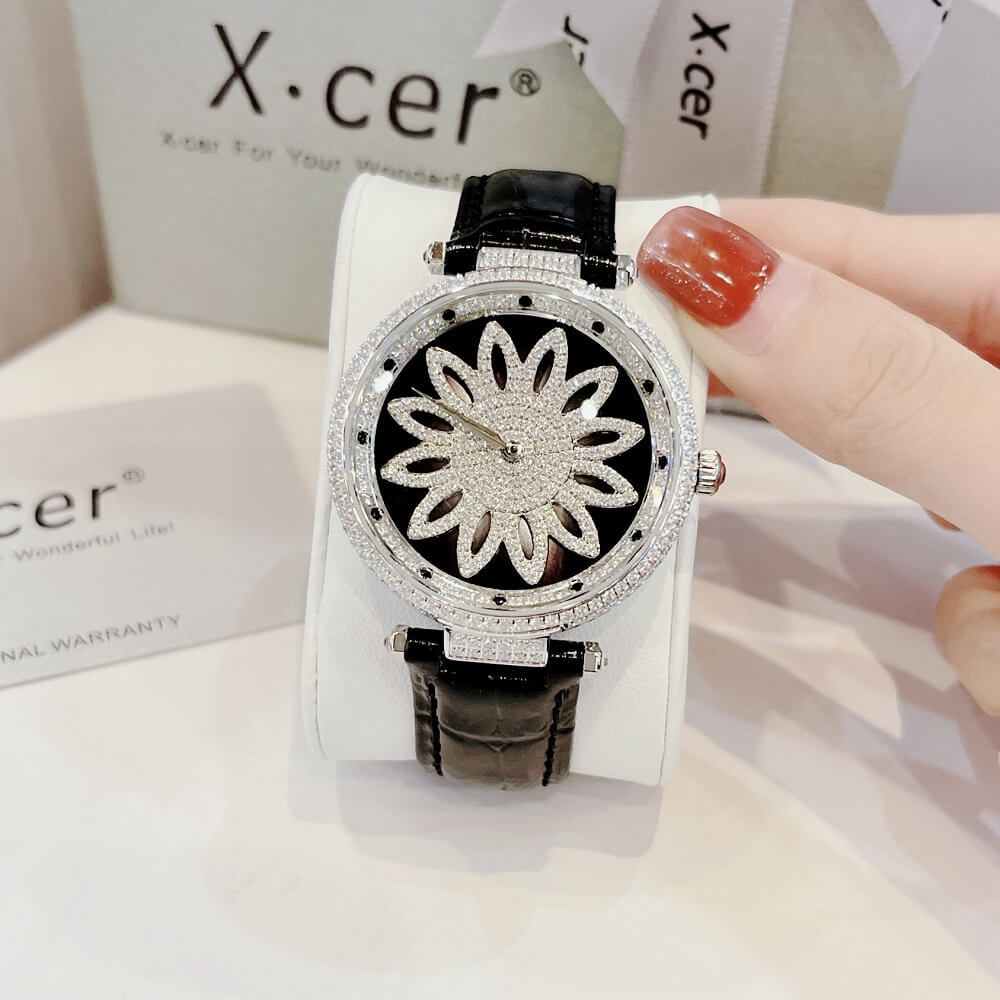 Hình Ảnh Đồng Hồ Nữ X-Cer Mặt Xoay Dây Da Đen 39mm Chính Hãng B0592