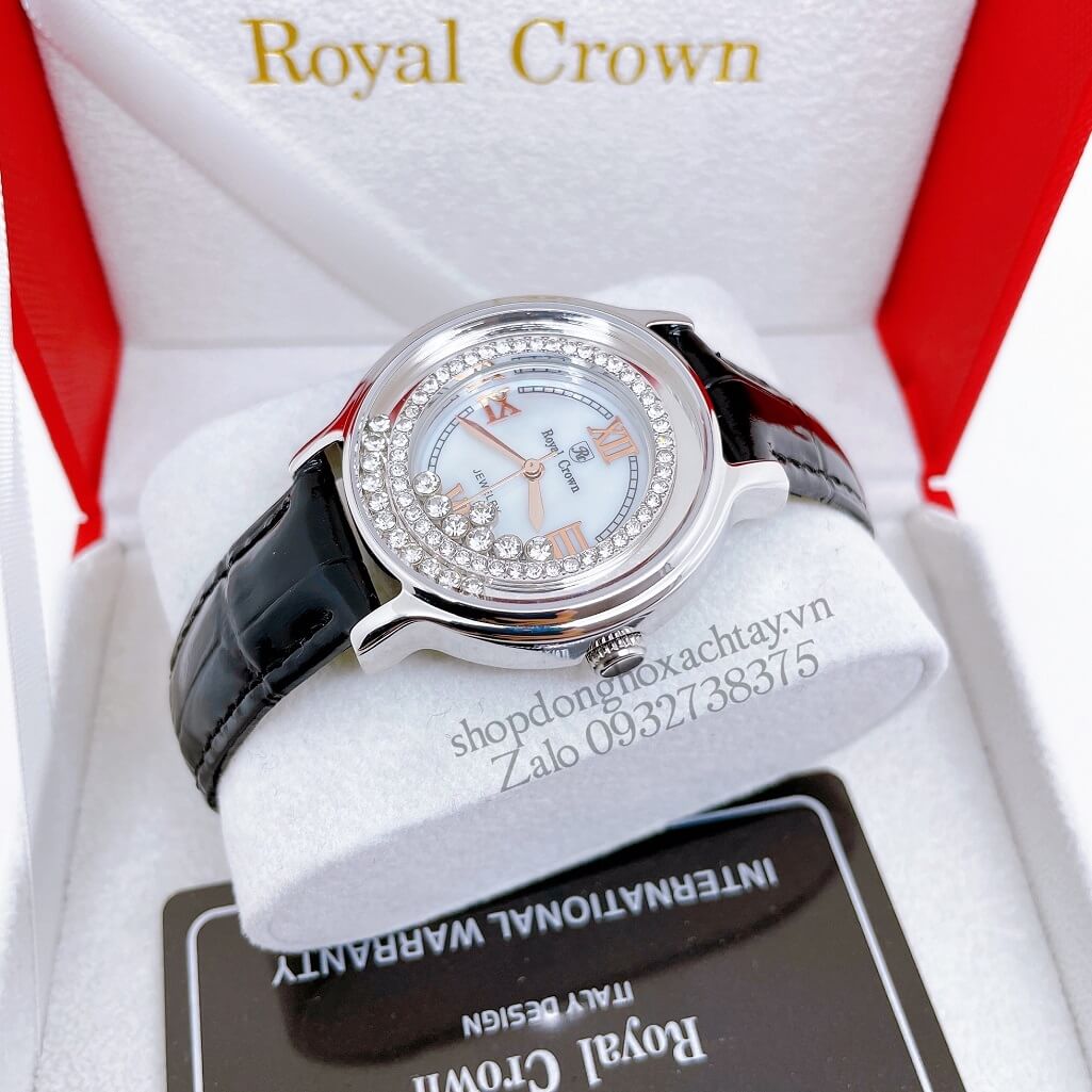 Đồng Hồ Nữ Royal Crown 3638 Da Đen 35mm Chính Hãng