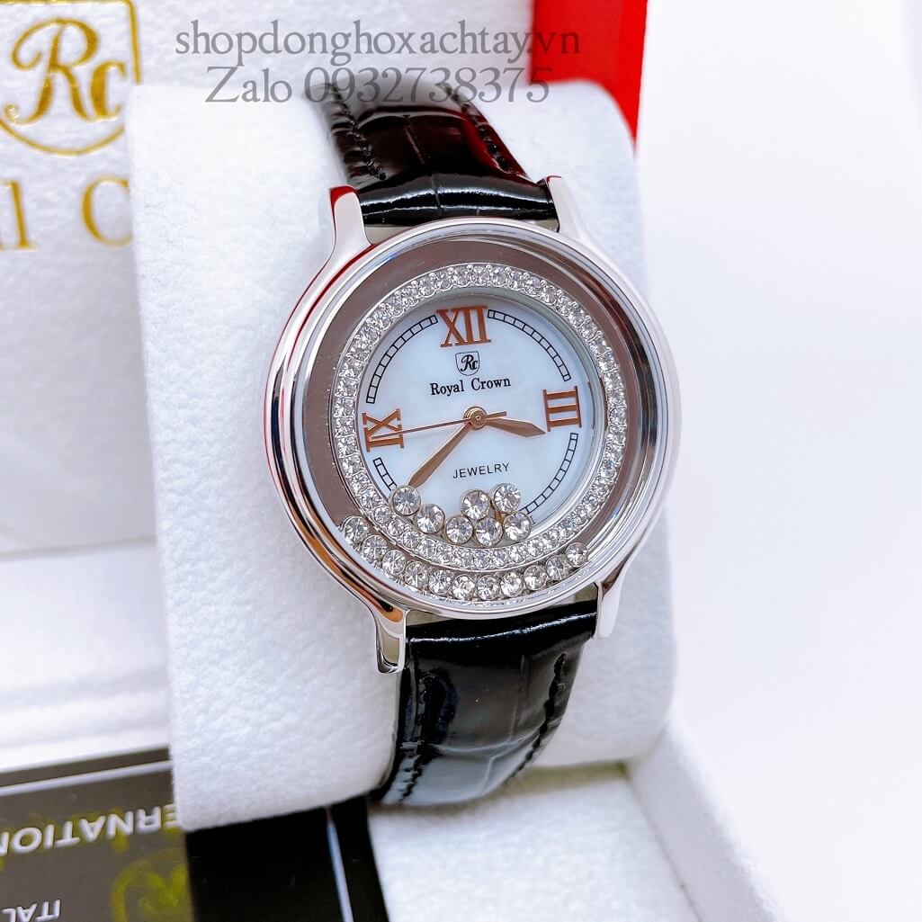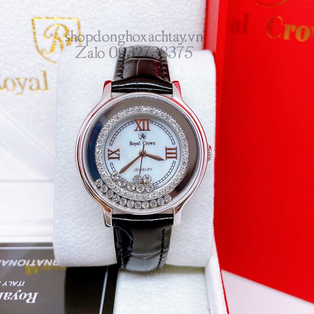Đồng Hồ Nữ Royal Crown 3638 Dây Da Đen 35mm Chính Hãng