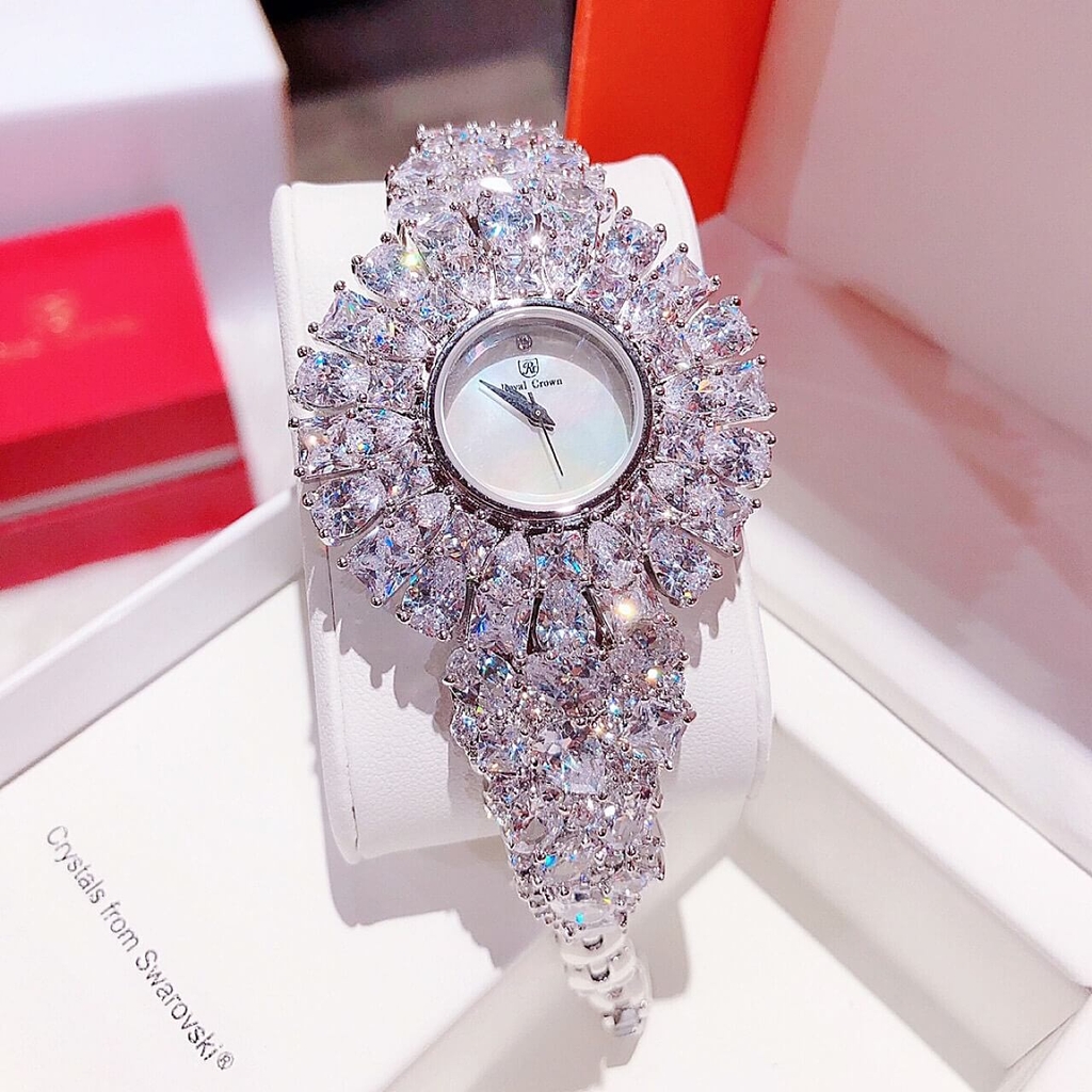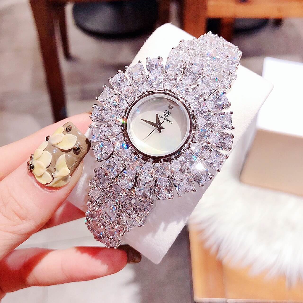 Đồng Hồ Royal Crown Nữ Bông Đá Tuyết Silver 5711 38mm Chính Hãng