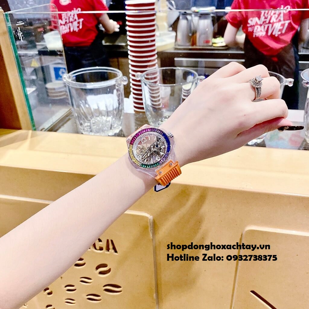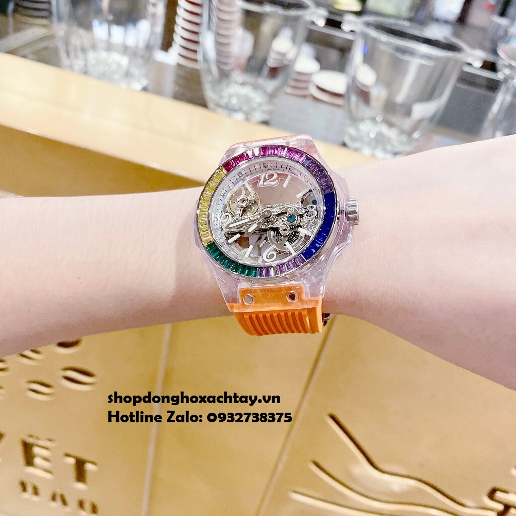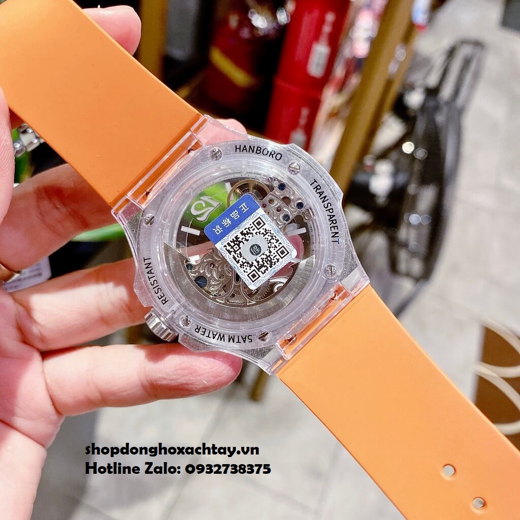 - Đồng hồ Hanboro chính hãng dành cho nam hoặc nữ tay to, máy cơ tự động Japan bền bỉ, vỏ nhựa cao cấp trong suốt, đeo nhẹ nhàng