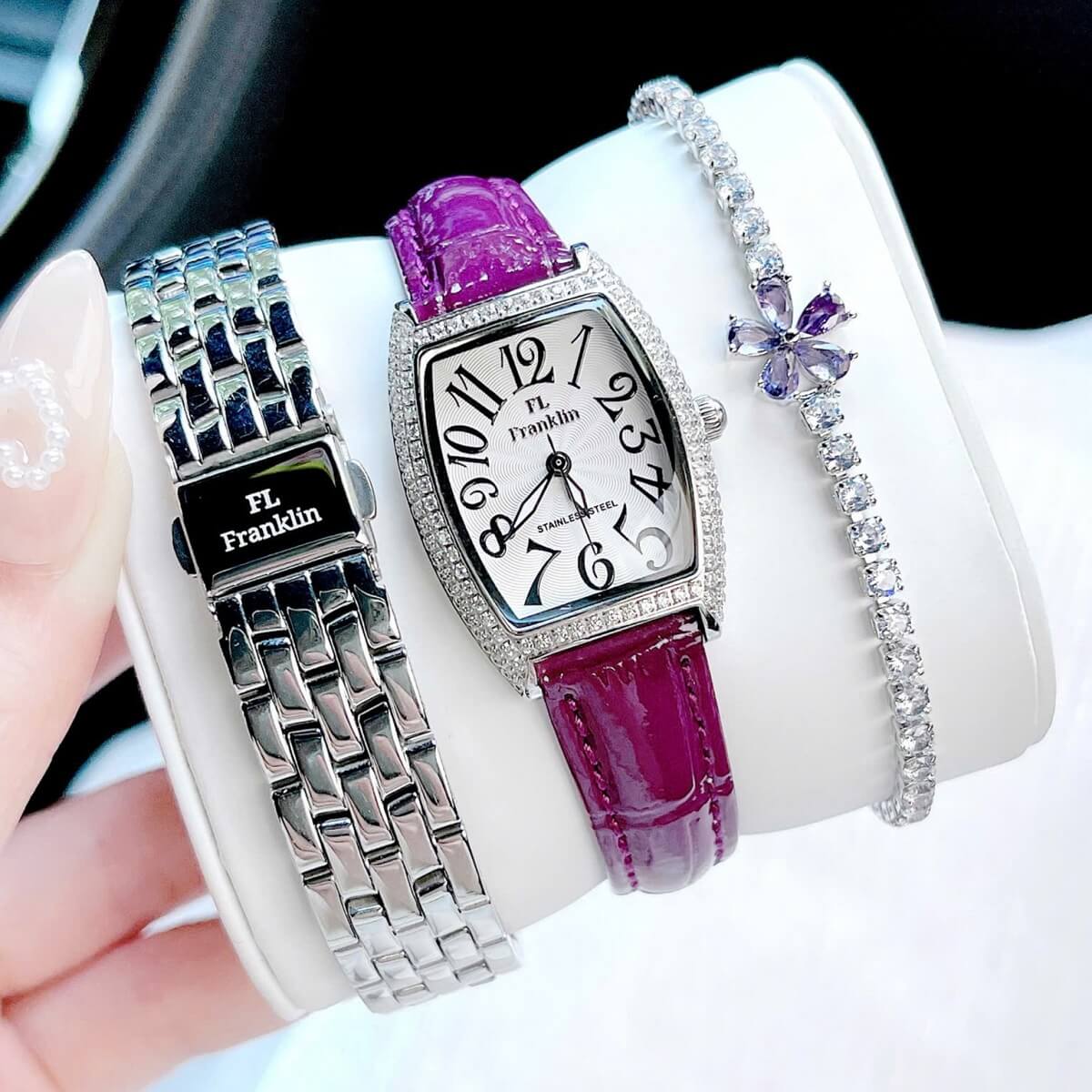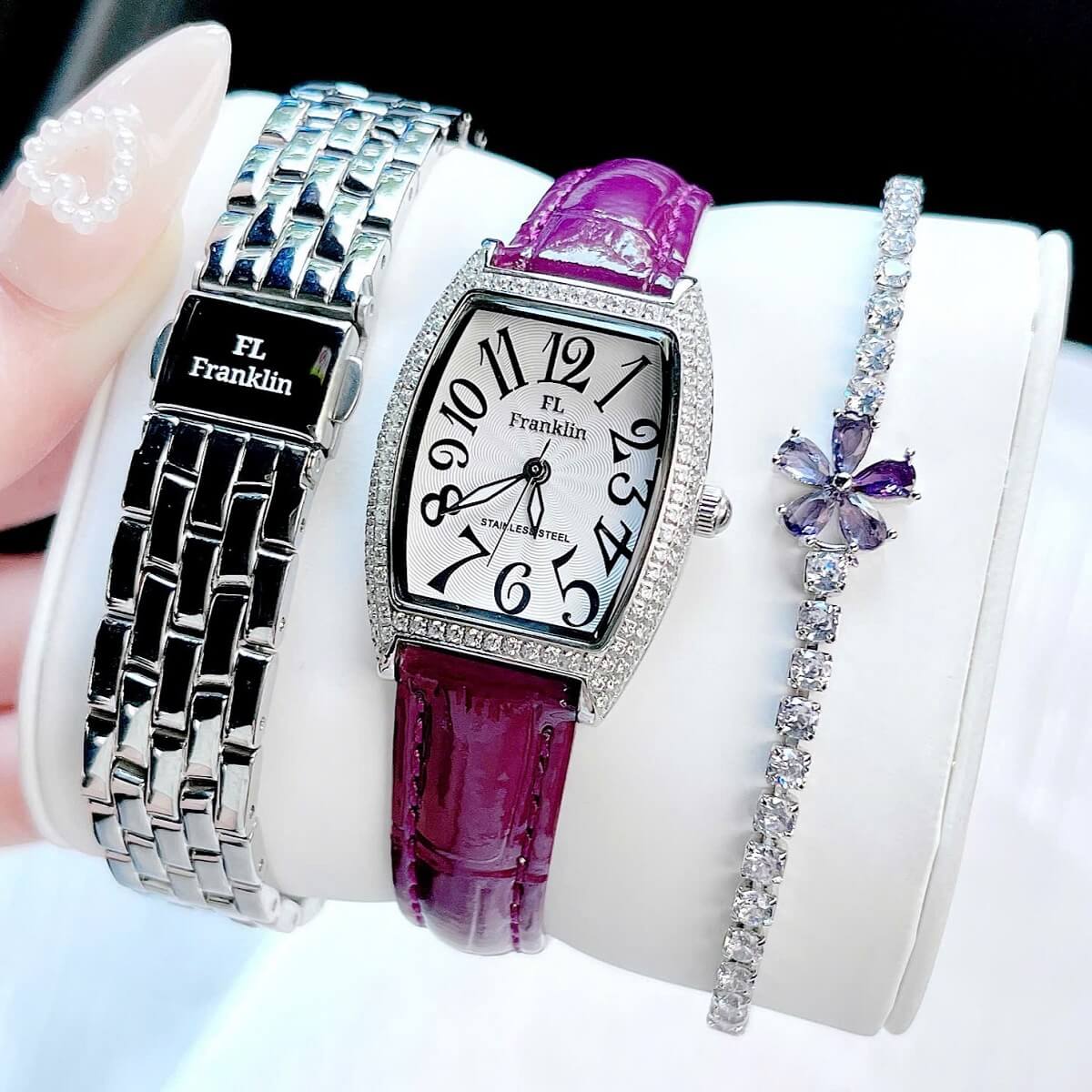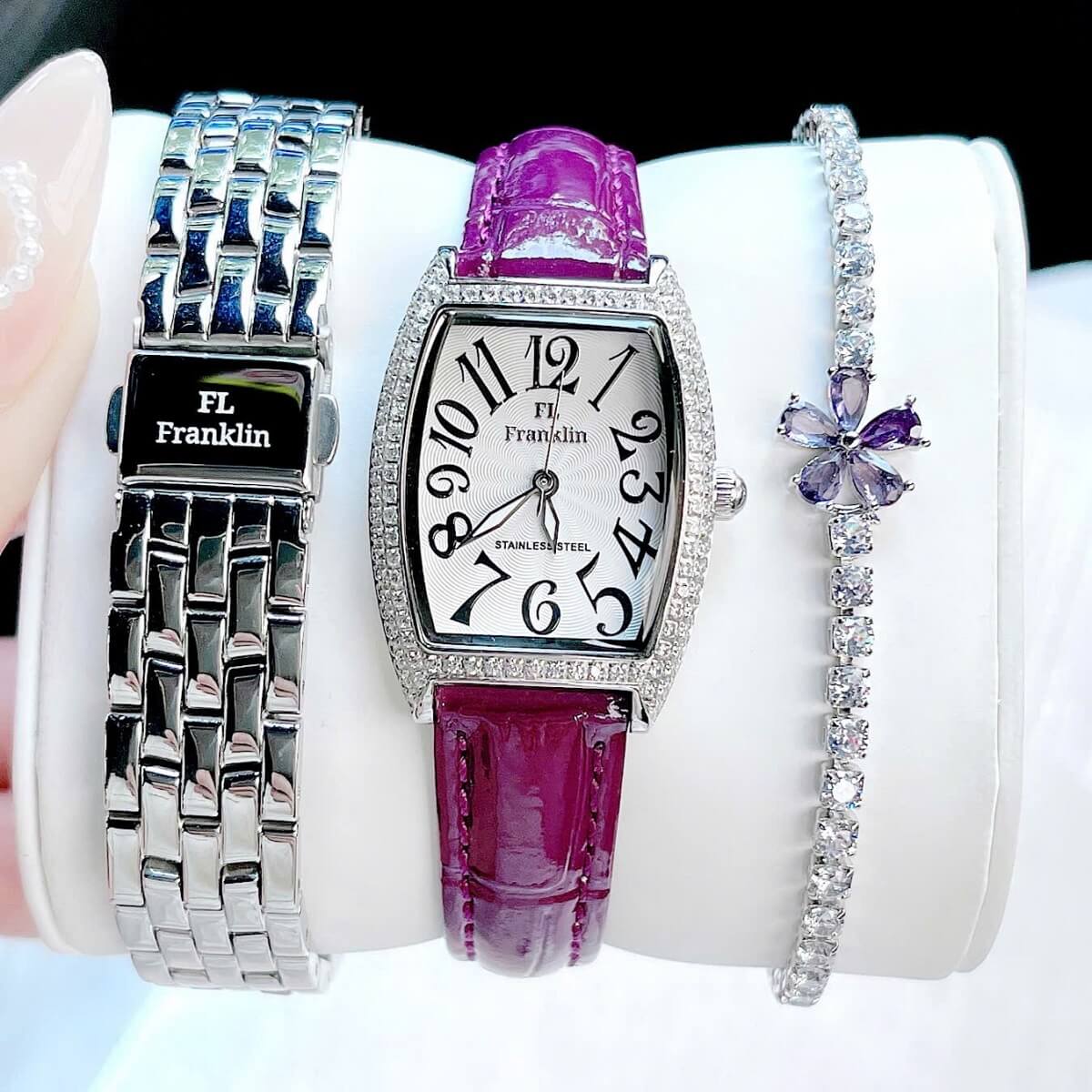 Thông số chi tiết sản phẩm: Set Đồng Hồ Nữ Franklin Dây Inox Kèm Dây Da Vỏ Silver Size 33mm Chính Hãng