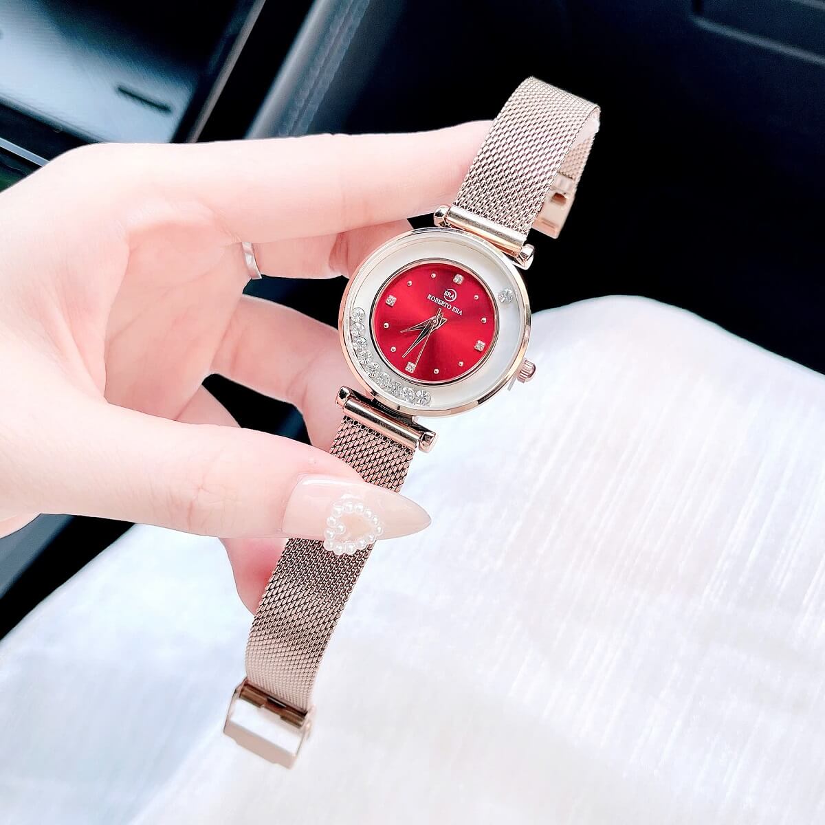 Đồng Hồ Nữ Roberto Era Dây Da Đỏ Vỏ Rose Size 32mm Chính Hãng là một mẫu đồng hồ sang trọng và thanh lịch từ thương hiệu Roberto Era, nổi bật với thiết kế thanh mảnh và sắc sảo. Dưới đây là một số thông tin chi tiết về sản phẩm này:
