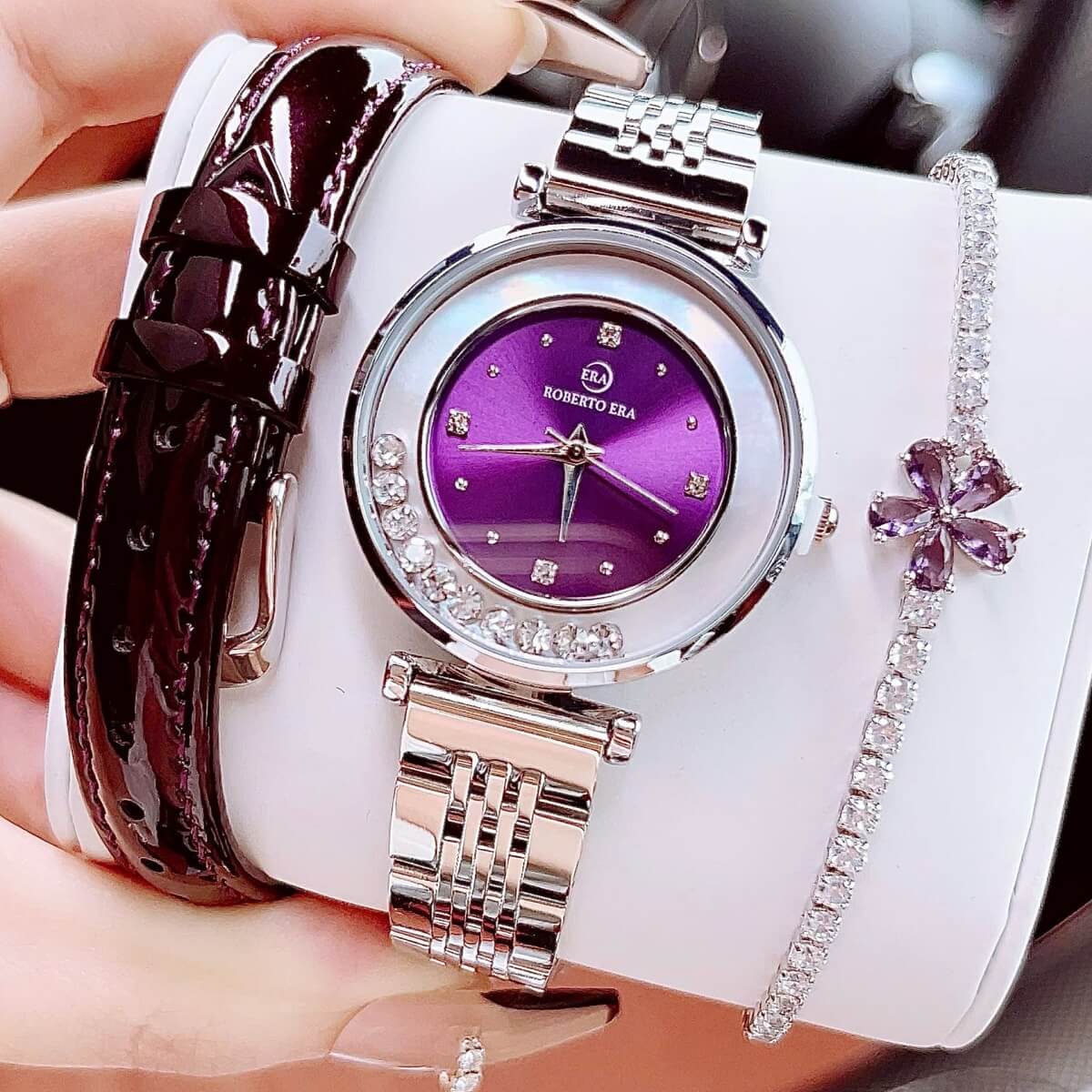 Đồng Hồ Nữ Roberto Era Dây Da Tím Vỏ Silver Size 32mm Chính Hãng là sự kết hợp hoàn hảo giữa thiết kế tinh tế, chất lượng vượt trội và phong cách thời trang thanh lịch. Đây là một lựa chọn lý tưởng cho những ai yêu thích sự sang trọng, hiện đại nhưng vẫn giữ được nét nữ tính và thanh thoát.